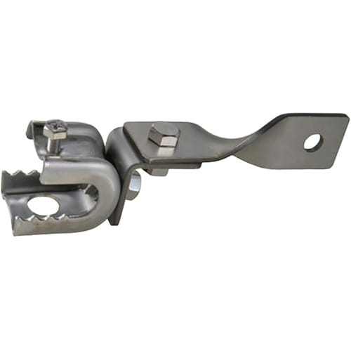 H鋼を始め、板厚23mmのものまで挟み込んで取り付けられる金具です。取り付けが簡単、角度が自由。 |