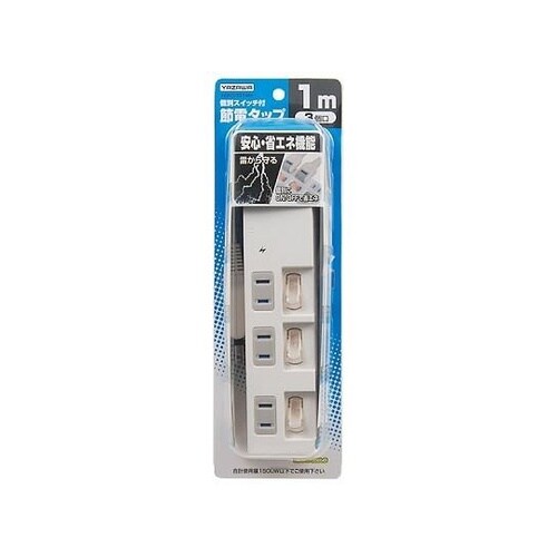 個別スイッチ付節電タップ 3個口 1m 白 Y02BKS331WH Y02BKS331WH 1個