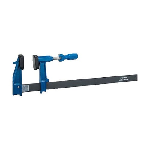 ダブルスクリューシステムです。2倍の速さで均一で並行に高圧力で締付されています。締付るとネジ山が保護カバーに隠れ溶接ゴミなどからネジを守ります。締付けやすく握りやすい可動式ハンドルです。 |