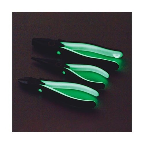 砲金サンドイッチ構造に加え、蓄光グリップを搭載したラジオペンチアゴ部分はビニールコードの被膜の剥離や圧着に使用可能。 |