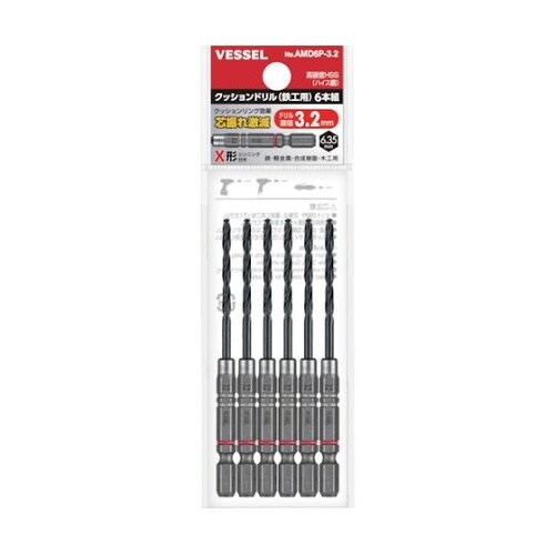 クッションドリル(鉄工用)6本組 Φ3.2×98mm AMD6P−3.2 AMD6P−3.2 1セット