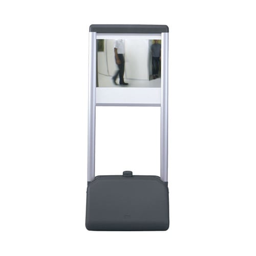 サインシックにコミー製FFミラーを取り付けた商品です。壁等が無く設置ができない場所にミラーを設置する為のスタンドです。 |