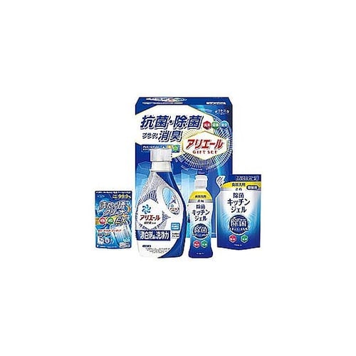 アリエール抗菌除菌ギフト抗菌洗剤アリエールと、少量でたくさん洗える濃縮タイプの食器洗剤除菌ジェル、室内干しのイヤなニオイを防ぎ、ふっくら柔らかく仕上がる抗菌・消臭ソフターのギフトです。 |