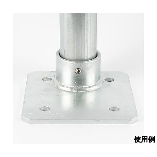 単管パイプφ48.6mm用パイプ差し込む位置がベースの端にあるため、スペースをムダなく使えます。 |