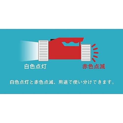 防災、レジャー、警備などシーンに合わせて使えるプロ向けの本格LEDライトです。赤フィルター付白色点灯と赤色点滅、用途で使い分けできます。照射角固定・ノーマル照射タイプ。 |