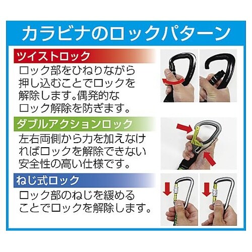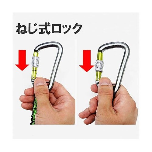 ねじ式ロック両端カラビナフック(線径8mm)付CEマーク認証品コントラストのあるステッチなので目視検査が素早く行えます。 |