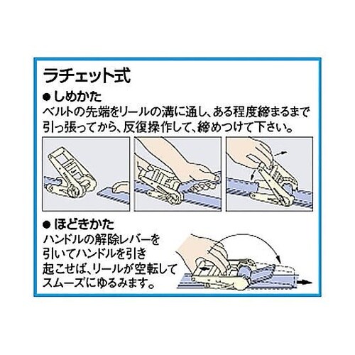 スチールバックルラチェット式の為、少ない力で強く締める事ができます。 |