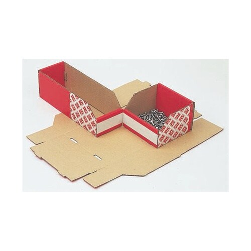 RS Pro前面半開き段ボールストレージビンRS Proの軽量段ボール製の部品収納容器です。棚に製品を保管するのに最適です。 |