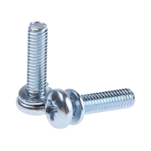 シングルコイルスプリングワッシャセムユニットは、なべ頭Pozidriv小ねじと、一体型キャプティブワッシャから構成されます。 |