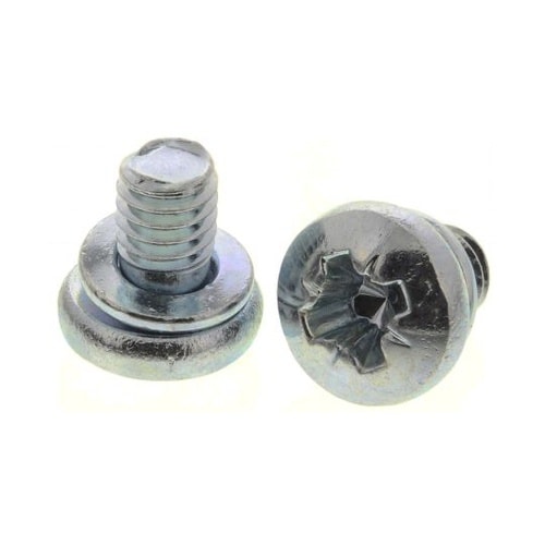 シングルコイルスプリングワッシャセムユニットは、なべ頭Pozidriv(TM)小ねじと、一体型キャプティブワッシャから構成されます。 |