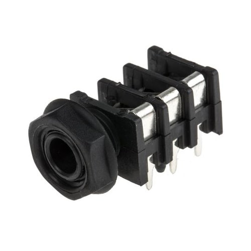 S1オフセットジャックソケット、ステレオRS Proのこのオフセットノーズジャックソケットは、低ノイズ信号を確保するためにシャーシにアースコンタクトを備えています。 |