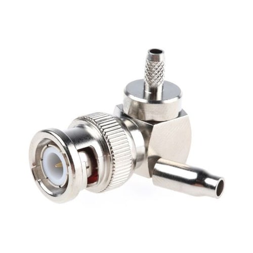 RS 75Ω BNC RF同軸ライトアングル圧着プラグコネクタバヨネットカップリング及び圧着終端付きの75Ω BNC RF同軸ライトアングルプラグコネクタです。 |