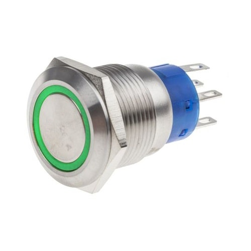 RS Pro 押しボタンスイッチ 5 A ラッチ パネルマウント 緑 双極双投(DPDT) 19.2 (Dia.)mm IP67 111−5782 111−5782 1個 A03R-7006