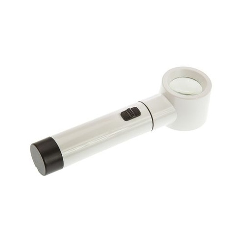 照明付き拡大鏡ユニットには、両面非球面レンズと、2xC電池(別売り)使用の2.5 V 250mA電球の照明付きハンドルが付いています。 |