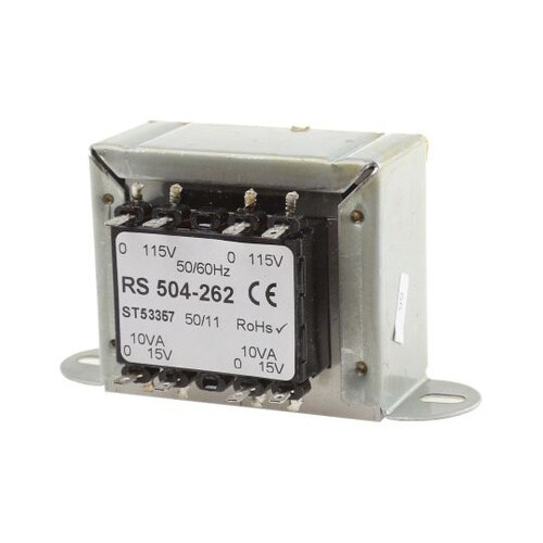 RS Pro シャーシ取り付けトランス 1次 115V ac 2次 15V ac 電力 20VA 504−262 504−262 1個 A03T-1783