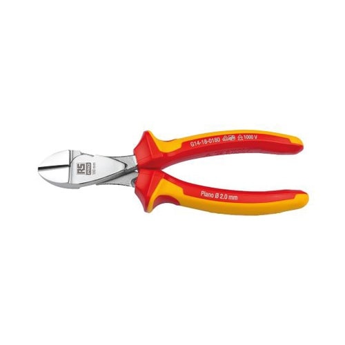 RS Pro強力傾斜ニッパーRS ProのG14シリーズ絶縁強力傾斜ニッパーです。最大1000 V ac又は1500 V dcの通電中作業に最適です。軟線 / 硬線の切断用です。 |