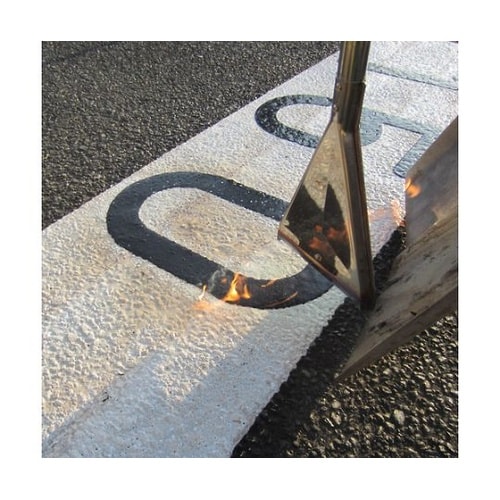 バーナーで加熱溶着させる強力タイプの路面標示材です。厚手で摩耗に強いです。駐車場、倉庫、ゴルフ場、教習所、商業施設などのコンクリート床やアスファルト面の交通安全表示や区画線、案内表示などに。 |