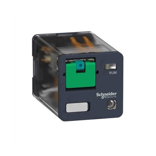 Schneider Electric 製品の Zelio RUM は、ベースにユニバーサルプラグインリレー、コンタクトをテストするためのスプリングリターンロック可能テストボタンです。 |