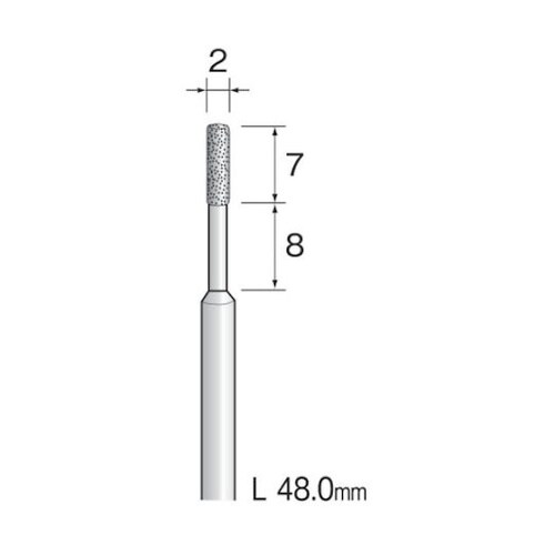 粒度(#):120 | 刃径(mm):2 | 刃長(mm):7 | 軸径(mm):3 | 全長(mm):48 | 最高使用回転数(rpm):80000…