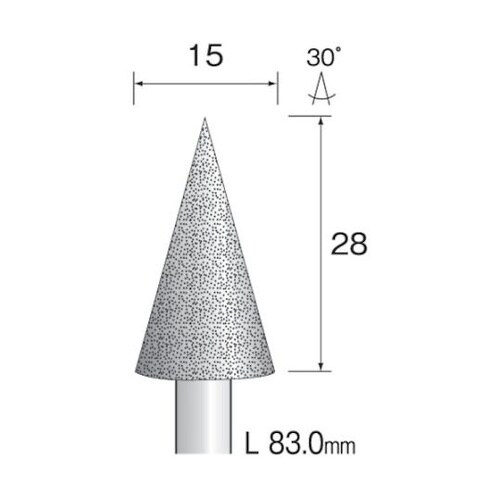粒度(#):120 | 刃径(mm):15 | 刃長(mm):28 | 軸径(mm):6 | 全長(mm):83 | 最高使用回転数(rpm):200…