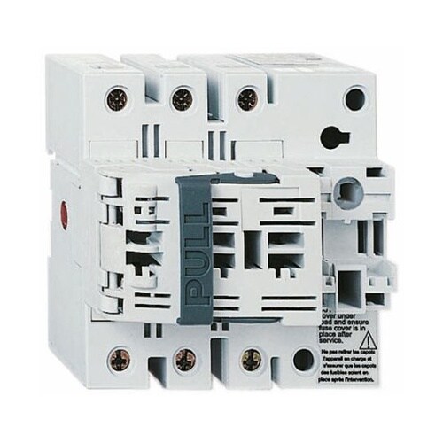 ヒューズスイッチ遮断器GS1シリーズNFC / DINヒューズ用のスイッチ遮断器装置です。 ねじ接続 DINレールで組み立て 別売りとして接続製品向けの保護用端子カバーがあります。 |