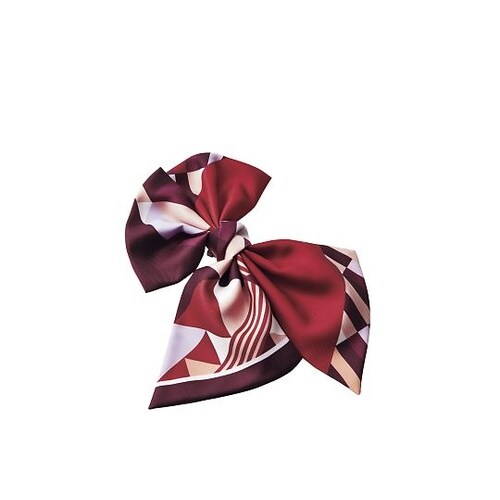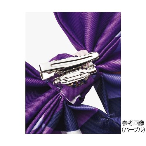 華やかな印象に一変する幾何学プリントのブローチリボンの裏側はクリップとピンのダブル仕様になっています。 |