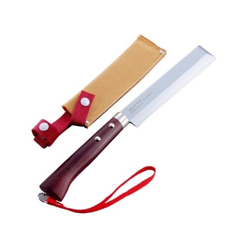 高硬ステンレス鋼と安全性を考慮した鉈。HRC58°を誇る頑強かつ鋭い切れ味と、耐錆性で高い使用感。刃部鏡面仕上げにより汚れが落としやすく、お手入れの負担を軽減します。 |