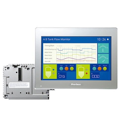 SP5000シリーズは操作パネルの表示器として採用できるインターフェイス端末です。2つのイーサネットポートにより、生産現場とオフィスをセグメント化して安全にネットワークにつなぎます。 |