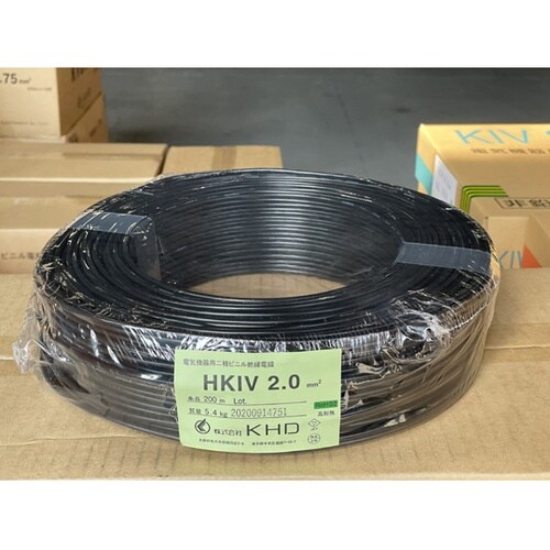 電気機器用耐熱ビニル絶縁電線 1巻(200m入) HKIV 2.0sq 黒 HKIV 2.0sq 黒 1巻