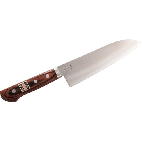 不錆鋼で最高峰のV金10号仕様。水に強いマホガニの柄を付け、ブレード・柄共に最高の素材を使用しています。 |