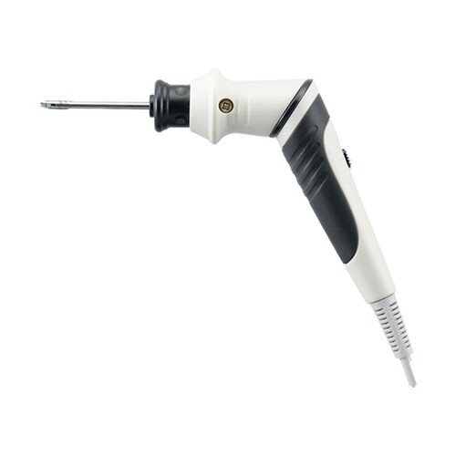 グリップ先端を回転させ、作業に適したグリップ形状でお使いいただけます。通電状態を確認できるLEDランプがついています。立ち上がりの温度は、350℃到達に約35秒、450℃到達に約65秒です。 |