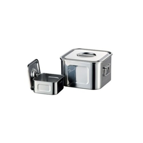 タレや調味料等の保存や小分けに便利なキッチンポット。角型なのでスペースを有効に使えます。電解研磨仕上げにより、耐食性/耐酸性がより強化されています。蓋は本体の縁に引掛ける金具付き。 |