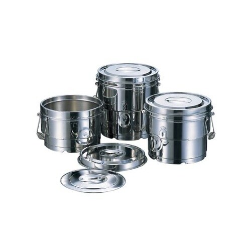 機能性バツグン!保温性にも優れています。調理済みの料理(みそ汁、スープなど)を保温しながら運搬するために使われる食缶。主に学校給食をはじめとする給食の運搬に用いられます。 |