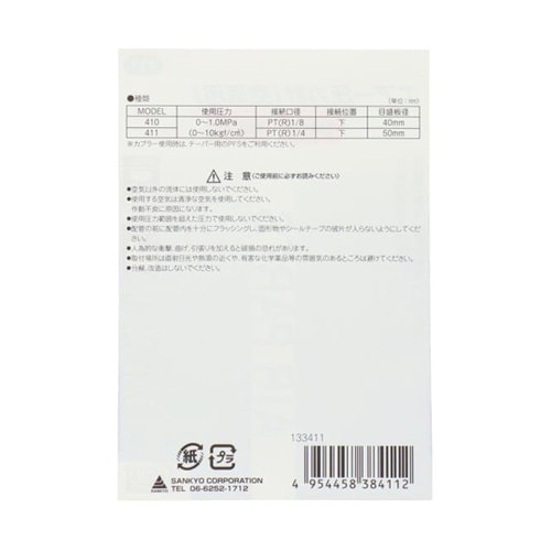 エアー圧力計(空気用)。 |