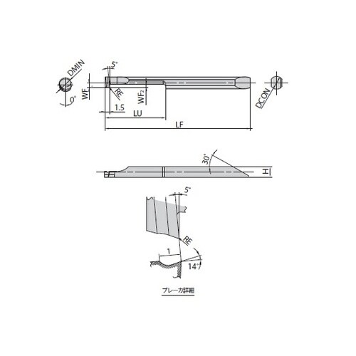 内径旋削。引き加工。内径旋削:引き加工。止まり穴への加工は、推奨しません。前切れ刃がワーク中心を超えた状態で加工すると欠損する場合があります。引き上げ加工は、推奨しません。 |
