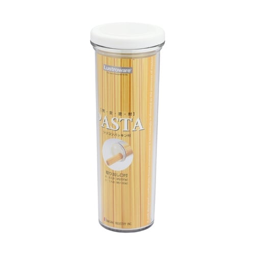 パッキン付の密封度の高いパスタ用容器一人前と二人前のバスタ計量用の2種類の穴開き内フタ付き透明なので中身がクリアに見えます。スッキリしたデザインなのでキッチンインテリアの一部としても活躍します。 |