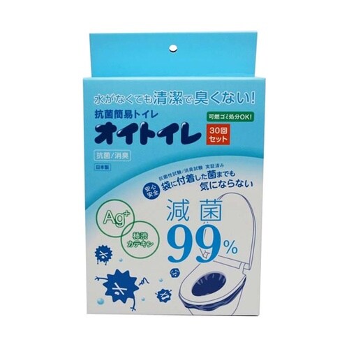 水がなくても清潔で臭くない!水がない緊急時のトイレ(災害時・断水時・レジャー時・ドライブ中 等)30回セット入り。Ag+・柿渋カテキン配合・3つの抗菌・消臭(凝固剤/トイレ用袋/処理用袋)。 |