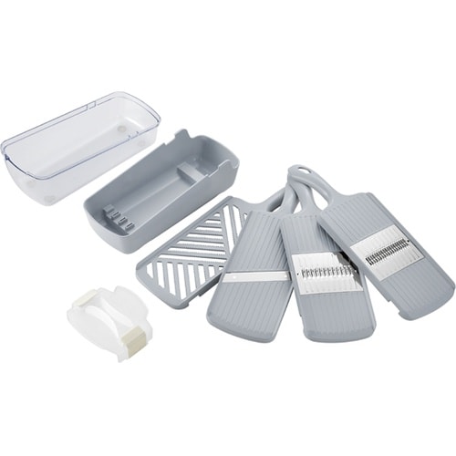 スライス刃:ステンレス刃物鋼 | 千切り・細千切り:ステンレス鋼 | フタ:AS樹脂 | ホルダー:ポリプロピレン | その他:ABS樹脂 | 耐冷温…
