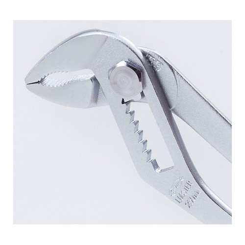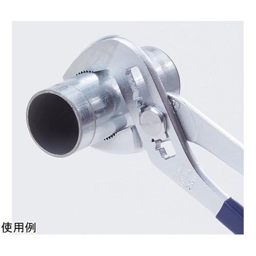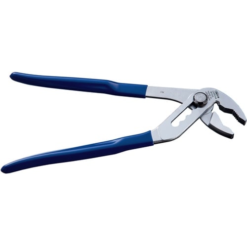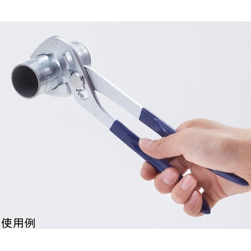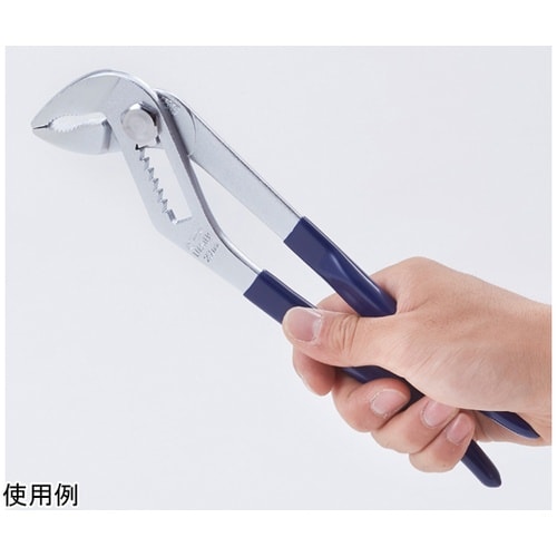 バネの力で柄が自動的に開きます。わずか120mmハンドルを広げるだけで口幅の調節がスムーズにできます。くわえ部歯形は円弧状(R形)のため、あらゆる形状の物をしっかりつかみます。 |