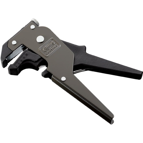 インジゲータ付調整ネジをまわしが簡単にできます。ビニール線のサイズに適合した皮剥きストリップが簡単にできます。シャープなカッター付き。ビニール線のストリップに。ビニール線のカットに。 |