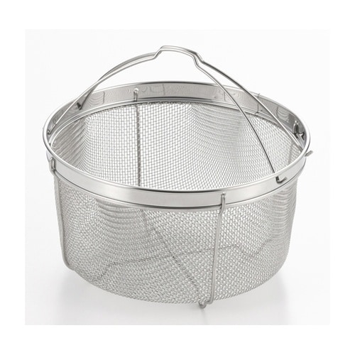 取っ手付きで楽に取り出せる。取っ手が付いているので、茹で上げた野菜や麺類などを楽に取り出すことが出来ます。日本製。 |