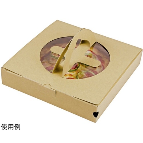耐油性、耐水性に優れた定番の正方形のピザ箱です。取手付きで持ち運びも楽々。 |