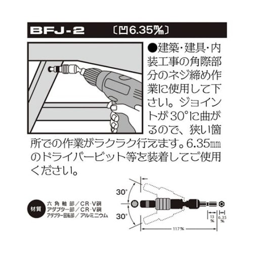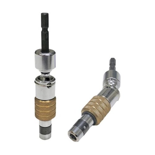 ジョイント部は30°に曲がるため、狭い箇所での作業が楽に行えます。ソケットのシャンク部は特殊圧入式を採用しており、耐久性に優れた仕様となっています。狭い所や角際部分のネジ締め作業に。 |