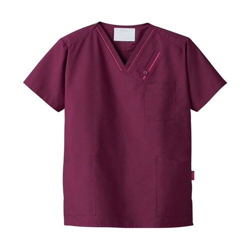 フィルムバッヂが付けられる工夫を凝らした機能派スクラブ右袖にPANTONEオリジナルピスネーム付き。着脱しやすいリングドット付き。重量拡散ポケット付き。落下防止タブ付き。左胸ポケット付き。
