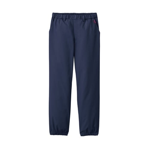 腰ニット素材、総ゴム、両脇ポケット、後側裏地メッシュ、ベルトループ付、ウエストひも入り、裾ゴム入り