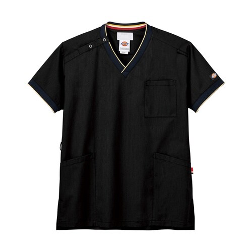 衿元と袖のリブにアクセントカラーをあしらったスポーティなデザインリブ仕様の襟と袖▼スポーティなリブ仕様。裏側にアクセントでディッキーズカラーを配色しました。左腕にはディッキーズのロゴ付き。