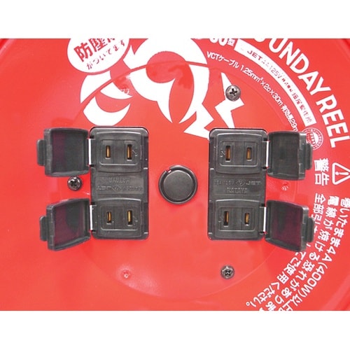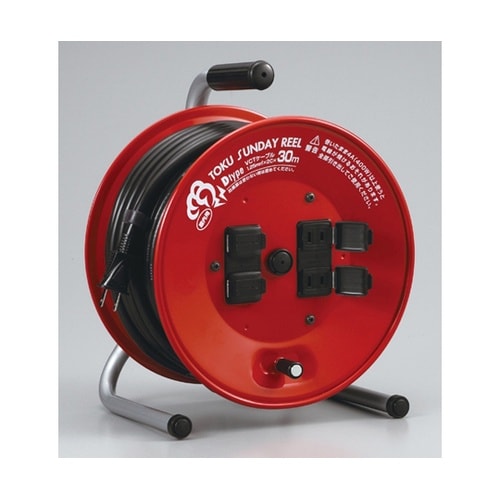 防塵扉付コンセント付、お求めやすさと、使いやすさの究極です。定格電流は電線を巻いたままの状態で使用できる電流です。円盤は鉄板製です。コンセント防塵扉付。商品画像は、D−30を使用。 |