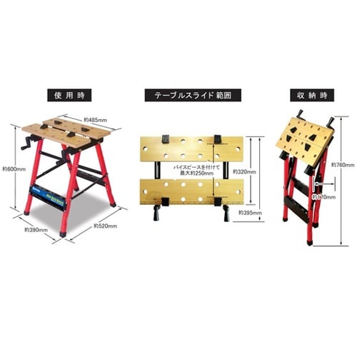 作業台として軽量、コンパクトで持ち運びに便利な折りたたみ式作業台です。折りたたみ式なので、収納時に場所を取らず便利です。 |
