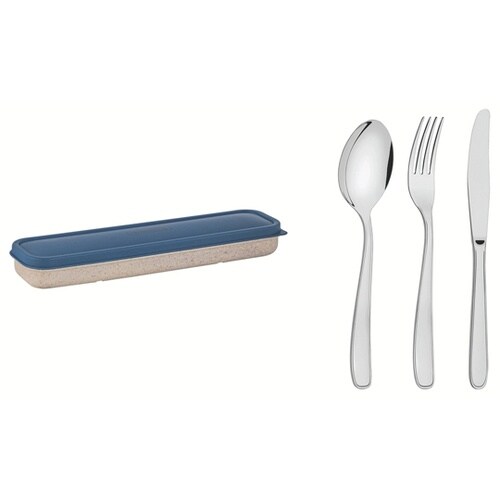 バイミー オールステンレステーブルウェア 3点セット ケース付き 青 61229/000 61229/000 1セット