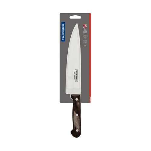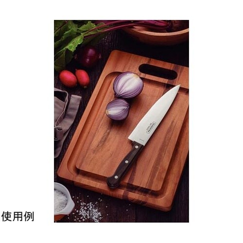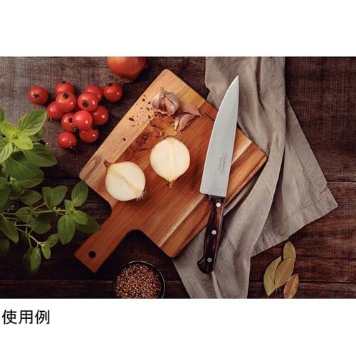 食器洗浄機でも使える、天然木柄のカトラリー。牛刀と呼ばれ先端が鋭く、肉や魚を捌くときに便利です。特殊なポリエステル樹脂に浸した木版を何層にも圧着して仕上げた強化木ハンドル。 |